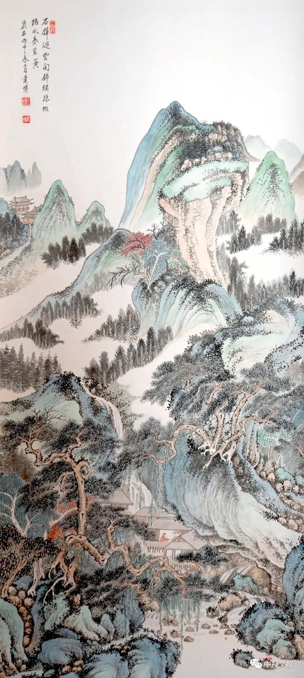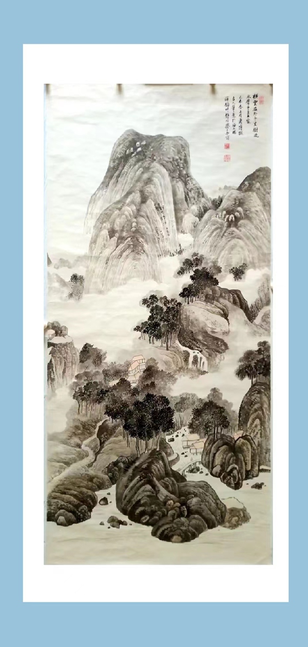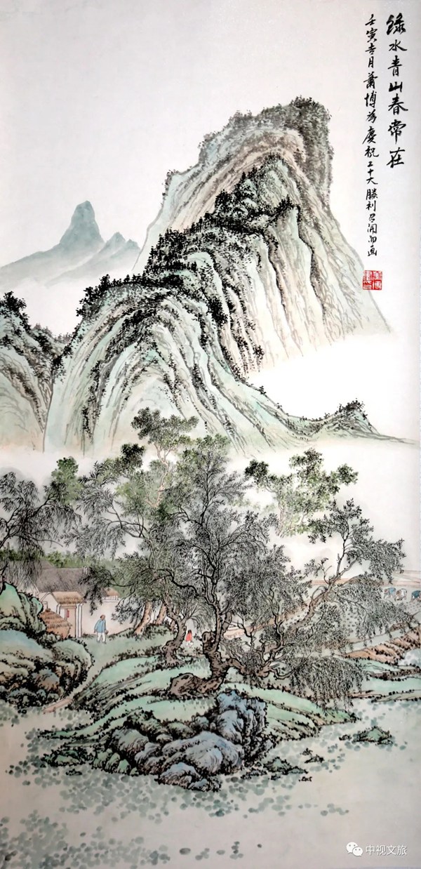 作品“春江花月夜”長卷由三位百歲老人:顧振樂,袁淡如,田遨前輩題字。