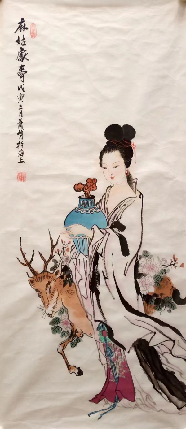 兩年前,兩位老師讓我認識了蕭博,一個女畫家,一個畫著許多長卷的女畫家。這些長卷,有臨摹《八十七神仙卷》的,有她自己再創作的《五百羅漢圖》,還有其他菩提樹下的人物景象。她的畫和善安靜,看得出許多年修煉,風風雨雨,我相信,她是用了幾乎所有的精力畫著畫的。這個世界上,有許多可以做的事情,蕭博選擇的只是畫畫。因為她喜歡。寂寞還是熱鬧,冷落還是溫馨?一個長卷要畫多少日子,這么多長卷又是多少日子?看來,蕭博沒有深算過。沒有深算的人做畫家,這個人的畫不刻意,也沒心計。沒有深算的人,很配做畫家。因為畫本來就不需要慘淡經營。人的生命開始的時候,是一張白紙,一張白紙,可以畫最新最美的畫。蕭博,是真的用生命來畫畫。我見了她的畫,也見過她的人。總覺得這人只是和畫在一起,才真實。離開了畫,就無從認識,也記不住這個人。