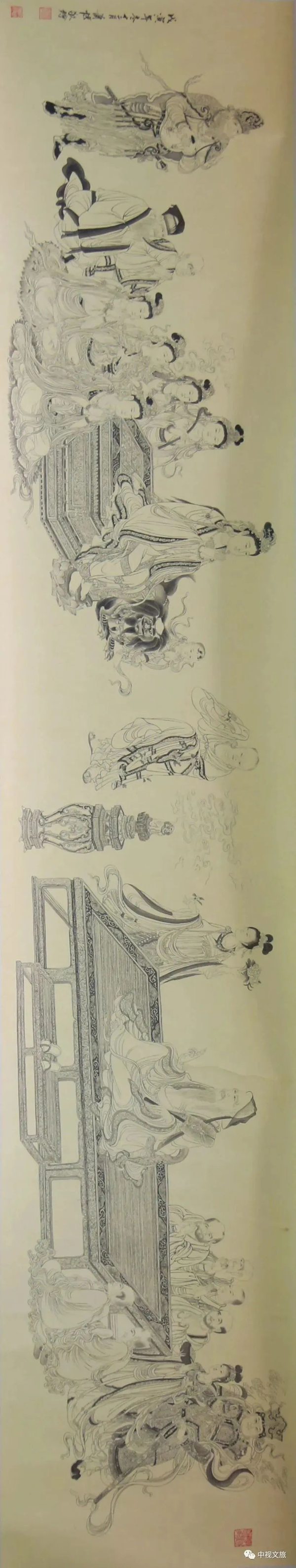 作品三十七米長卷“五百羅漢圖”由程十發,吳野洲,高式熊,周愚山先生題字。