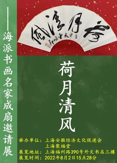 夏風如茗,八月桂香。在慶祝建軍95周年和迎接黨的二十大勝利召開之際,上海安徽經濟文化促進會文化藝術專委會和上海聚福堂聯袂舉辦《荷月清風.名家成扇展》。這是滬皖兩地書畫界的一件喜事,是發揚國粹,文化自信的一場藝術盛宴。