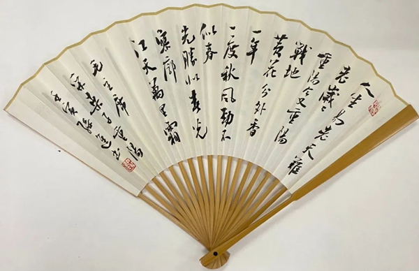 開合清風紙半張,隨即書卷豈尋常。扇面書畫系我國文化瑰寶,最早見王羲之《六角竹扇》之軼事,已綿衍數千年。雖幅不盈尺,卻集詩書畫印于一體。舒展之際,納大千世界。這次展出的百多把扇面,圍繞弘揚主旋律,謳歌新時代,主題鮮明,內容豐富,格調高雅,氣象萬千。美術臻品:或以大小寫意,或以工筆白描,抒以心聲,鉤以情懷。書法佳構:正草隸篆,龍飛鳳舞,流派紛呈,百花齊放。作者隊伍,老中青濟濟一堂。既有蜚聲畫壇的前輩大家,聲名鵲起的中堅之秀,還有海派宗師的后裔名流。