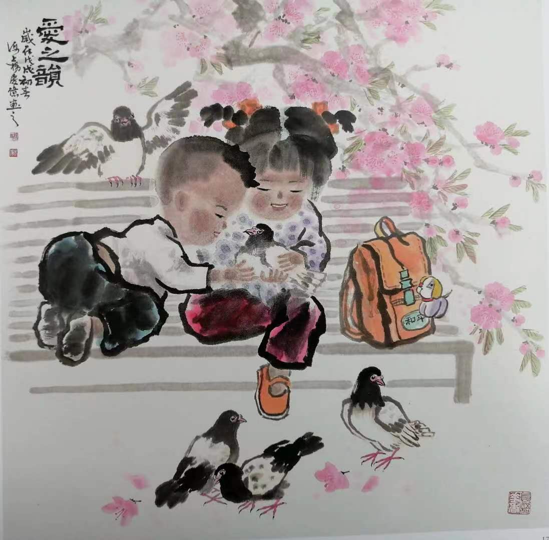 仔細琢磨,現(xiàn)代花鳥畫和兒童人物畫不僅需要作者有深厚的傳統(tǒng)功力和文化底蘊,并能融合西法,借鑒油畫、水彩、版畫、攝影等姐妹藝術(shù)的養(yǎng)料,在長期的藝術(shù)修養(yǎng)和實踐中,于不知不覺中將各類藝術(shù)長處融合與吸收,這種吸收不僅僅是技法上,同時也是對多種觀念的吸收,并始終深持自己鮮明的藝術(shù)個性,“筆墨當隨時代”,我們祝愿楊慶億創(chuàng)作出更多具有藝術(shù)魅力,符合時代要求,富有生命力的中國畫作品。