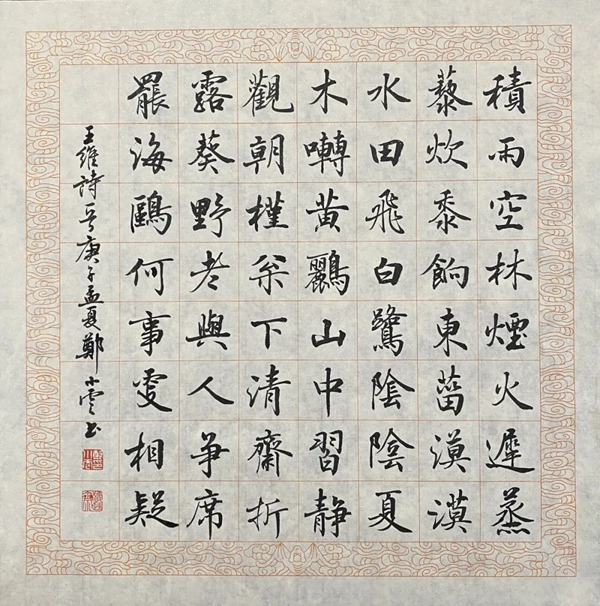 鄭小云書(shū)法讓圈內(nèi)同道首肯、稱(chēng)頌且留有印象,來(lái)自于第十屆全國(guó)書(shū)法大展。在代表國(guó)家層面書(shū)法藝術(shù)最高展項(xiàng)上,鄭小云以一幅精美的楷書(shū)作品榮譽(yù)入選。在長(zhǎng)年從事書(shū)法藝術(shù)創(chuàng)作者來(lái)看,鄭小云之舉當(dāng)屬藝高膽大所為!書(shū)法界人熟知,即便有著幾十年的楷體書(shū)寫(xiě)功力,也不敢貿(mào)貿(mào)然出手楷書(shū)作品參展,因?yàn)樘y了。要想在幾十萬(wàn)件的應(yīng)征作品中脫穎而出,如果沒(méi)有完備且精湛的書(shū)法創(chuàng)作功力讓國(guó)展評(píng)委信服,那純屬“瀟灑走一回”,陪人湊熱鬧而已。