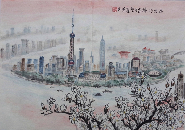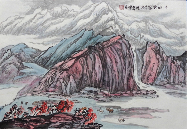 油畫師承顏文樑,國畫師承陸一飛。從研究明代畫家唐寅入手,遍臨唐、五代、宋、元、明、清等歷代書畫名家作品,植下了堅實的傳統根基;并以大自然為師,他還應邀前往全國講學、寫生,走遍祖國大江南北,探尋造化的奧秘,寫生稿盈夾,藝技日進,終有所成。藝術風格入傳統而不泥古,心師造化,獨辟蹊徑。其作品水墨淋漓,雍容大器,古樸雋永,氣勢磅礴,意蘊悠長,用筆蒼勁有力,色彩淡雅明麗,雅俗共賞。