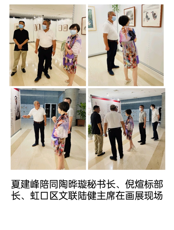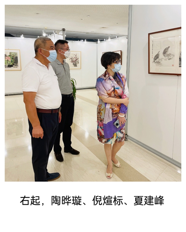 8月9日上午,農工黨上海市委秘書長陶曄璇、社會服務部部長倪煊標來到上海浦東圖書館參觀“師法自然、妙趣橫生—夏建峰花鳥畫作品展”,正在畫展現場參觀的虹口區文聯主席陸健和夏建峰一起接待并陪同參觀。這次展覽匯集了夏建峰老師近兩年的代表佳作,體現了當代中國畫藝術的傳承與創新。
