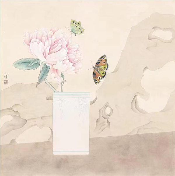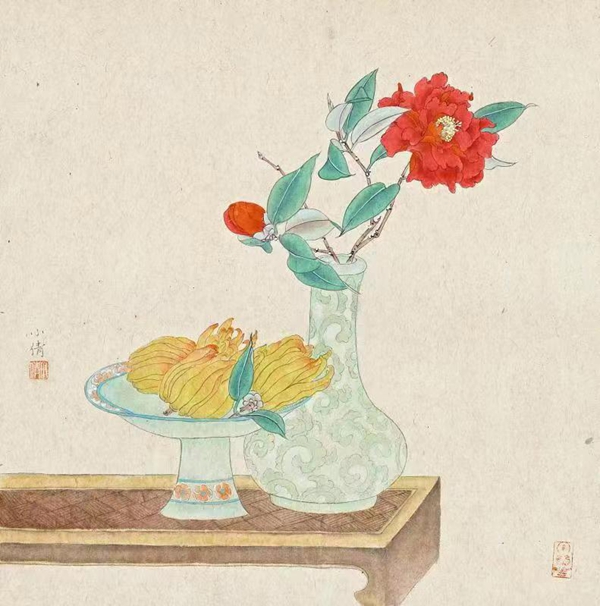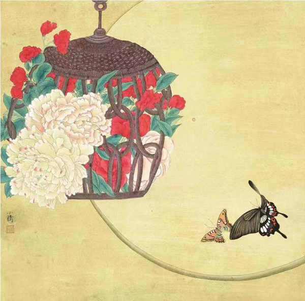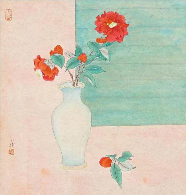 2021年 送你一朵小紅花系列 48×48cm 紙本設色