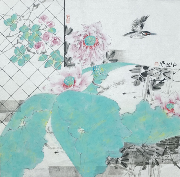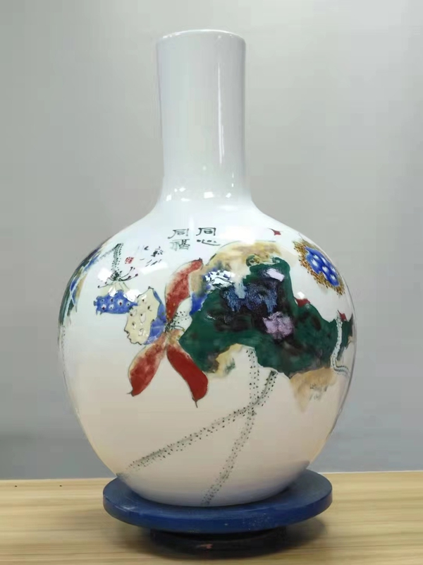 李新衛(wèi)是中國美協(xié)會員,自幼喜歡美術(shù),有著很高的藝術(shù)天賦,他的書法和國畫得到名家劉小睛和陳琪的指點。他長期從事花鳥畫創(chuàng)作,他筆下的花鳥,生機勃勃但又不事喧嘩,設(shè)色淡雅明麗,有著一種“無意苦爭春”,只是以自己芳華點綴我們生活的世界的低調(diào)和樸實,很像畫家本人性格,低調(diào)沉穩(wěn),不求聞達(dá)。李新衛(wèi)作為美協(xié)和書協(xié)的雙料會員,堅持白天上班,晚上看書寫字作畫,這些年,他埋頭秦古窯,執(zhí)著于專研瓷畫藝術(shù),專心致志地在瓷坯上揮毫作畫,在烈焰與瓷土1300度高溫的對話中,讓自己的藝術(shù)開出既有中國筆墨畫韻味又有陶瓷畫飛揚神采的鮮花和小鳥。中國陶瓷素來有著“白如玉,明如鏡,薄如紙,聲如磬”的典雅氣質(zhì),新衛(wèi)畫瓷懷著對陶瓷的一片赤誠之心,反復(fù)琢磨紙上畫和瓷上畫的分野和不同。如果說,紙上畫是藝術(shù),那么瓷上畫就是藝術(shù)和技術(shù)的結(jié)合。光有紙上畫的藝術(shù)功力而不顧瓷器燒制的技術(shù)要求,就無法展現(xiàn)瓷畫的妖嬈美麗。特別是釉彩在熊熊烈焰催生的窯變時,你對火候的掌握,對釉彩融化后流動的邊際預(yù)期控制,對色彩可能的全新的變化,新衛(wèi)都反復(fù)實驗、實踐,以求出爐的瞬間達(dá)到最光彩照人過目不忘的視覺效果。釉里紅的鮮艷,青花的素雅,綠葉的蒼翠,大都在還原繪畫色彩的同時還煥發(fā)出釉彩的特殊美感。新衛(wèi)還遵循瓷畫的規(guī)律特征,凸顯中國畫的筆墨線條千變?nèi)f化的節(jié)奏韻律,從而超越了一般的技術(shù)層面,而有了相當(dāng)?shù)乃囆g(shù)含量。同時,因為立體的瓷器不同于平面的宣紙,在構(gòu)圖上,他隨形就器,根據(jù)器形造型的不同,或扁或長,或方或圓,或大或小,慘淡經(jīng)營畫面,從而使器物上的圖像與器物渾然一體,猶如雕塑,可以從各個立面加以欣賞,各有興味。