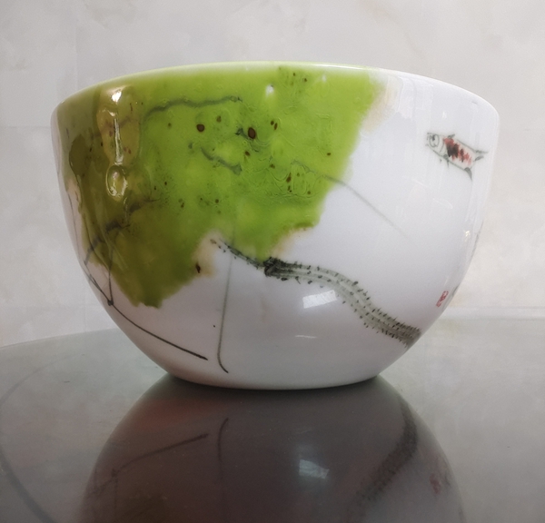 海派畫家歷來有著非同尋常的廣泛興趣和開闊視野,他們不僅在宣紙和畫布上盡情宣泄著自己的藝術(shù)才華,也不時會在瓷器上揮毫作畫。大體海派畫瓷可以分兩個階段。首先是上世紀(jì)六十年代,老一輩畫家林風(fēng)眠、朱屺瞻、唐云、謝稚柳、程十發(fā)、劉旦宅,都曾一次次去瓷都景德鎮(zhèn)畫瓷,那完全是一個非功利時代,老畫家們乘興而去,盡興而歸,為我們留下了許多神采飛揚的瓷盤和瓷瓶。我曾無數(shù)次在展覽會和朋友家中目睹他們的藝術(shù)在瓷器上的精彩重現(xiàn),但我們也應(yīng)該明白,這些藝術(shù)大家畫瓷,說到底還是余興所致,對于藝術(shù)與瓷器如何在“藝”與“技”的結(jié)合上,還沒有時間和精力去深入研究。這個遺憾,直到近二十多年才得到了有力的彌補。上海畫家有了就在家門口的自己的窯口,申窯、泠窯、秦古窯……。而且認(rèn)識到,畫瓷其實并不是把自己的“畫”直接照搬到瓷坯上。
