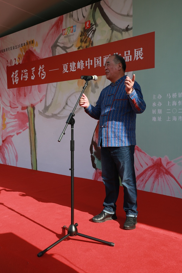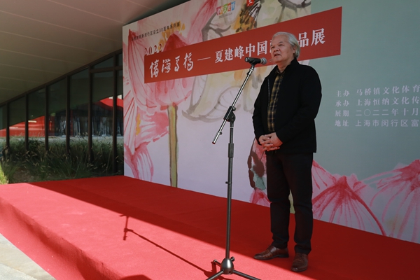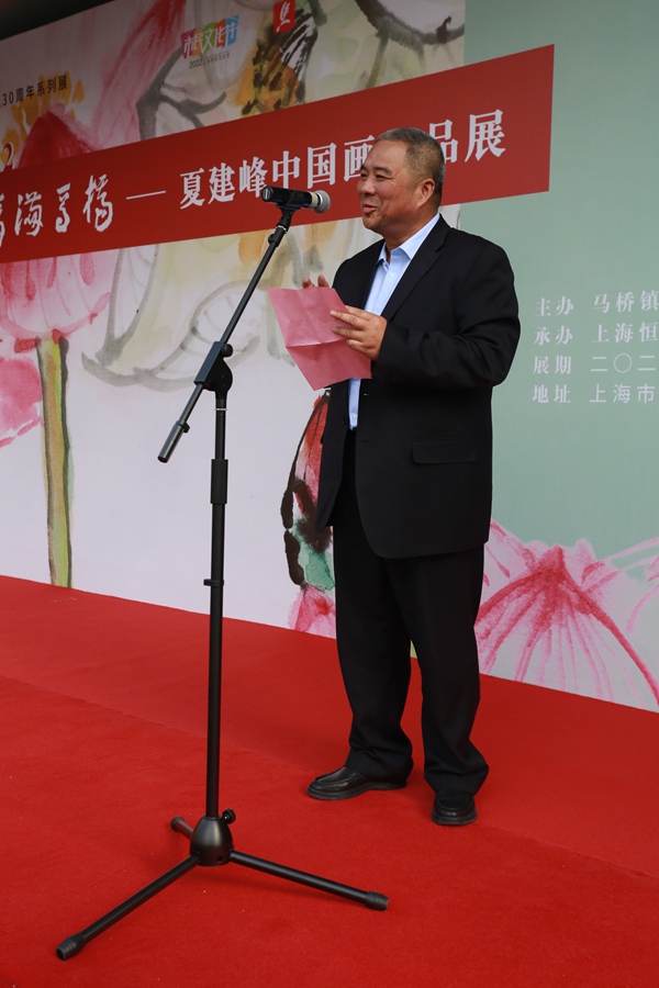 最后有馬橋鎮的老書記,現任閔行區書法家協會主席何國文,宣布“情滿馬橋”夏建峰中國畫作品展開幕!