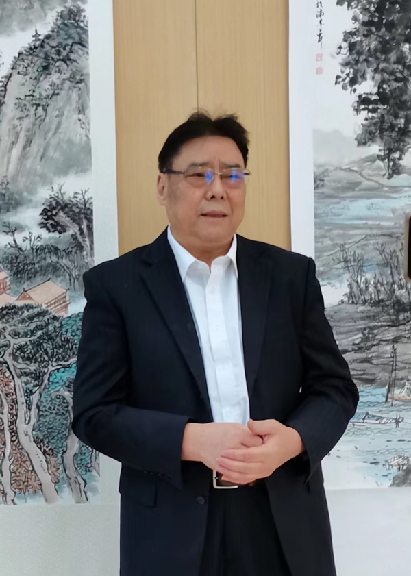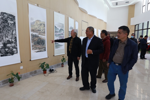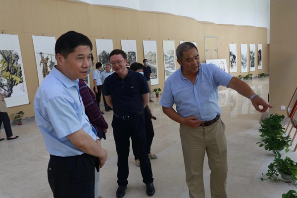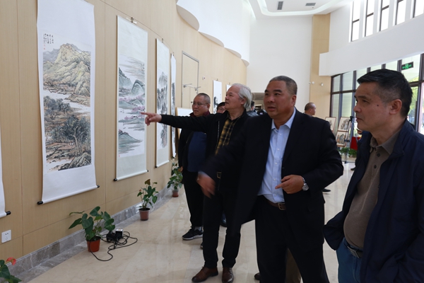 接下來由上海市美術家協會副主席陳琪老師發言,陳琪是夏建峰的老師,他充分肯定了這次展覽作品的質量,他又介紹了明代大畫家董其昌,董其昌是馬橋人,和夏建峰是同鄉,希望夏建峰再接再厲。