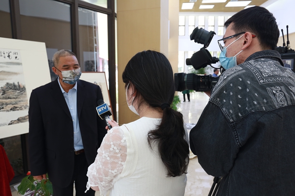 虹口區文聯副主席兼美術家協會主席余仁杰接受國學頻道的采訪