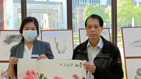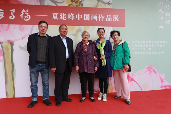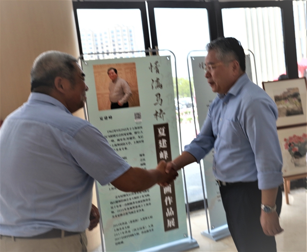 這次六十余幅作品在馬橋文化中心展出,是作為馬橋人,夏建峰老師六十周歲回家鄉的回報展,87歲的媽媽陳雅仙在妹妹的夏蓮鳳的陪同下也參加了開幕式!