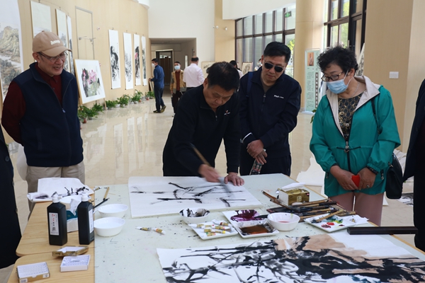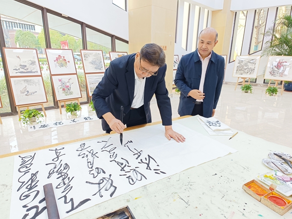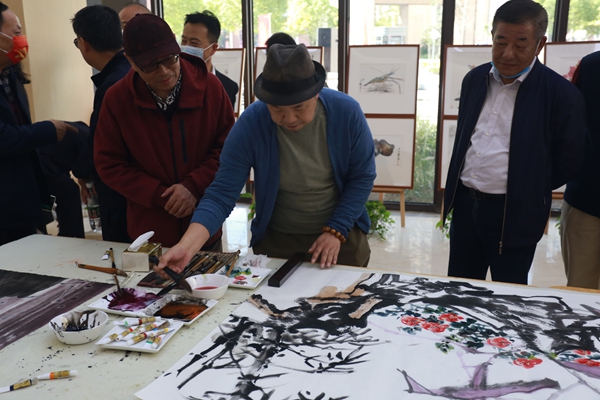 在開幕式上,來參加開幕式的書法家和畫家揮毫潑墨