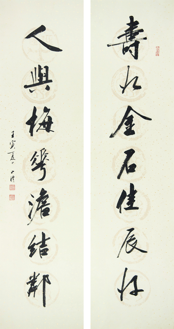 對聯 壽如金石佳辰好 人與梅花淡結鄰 134×34×2cm