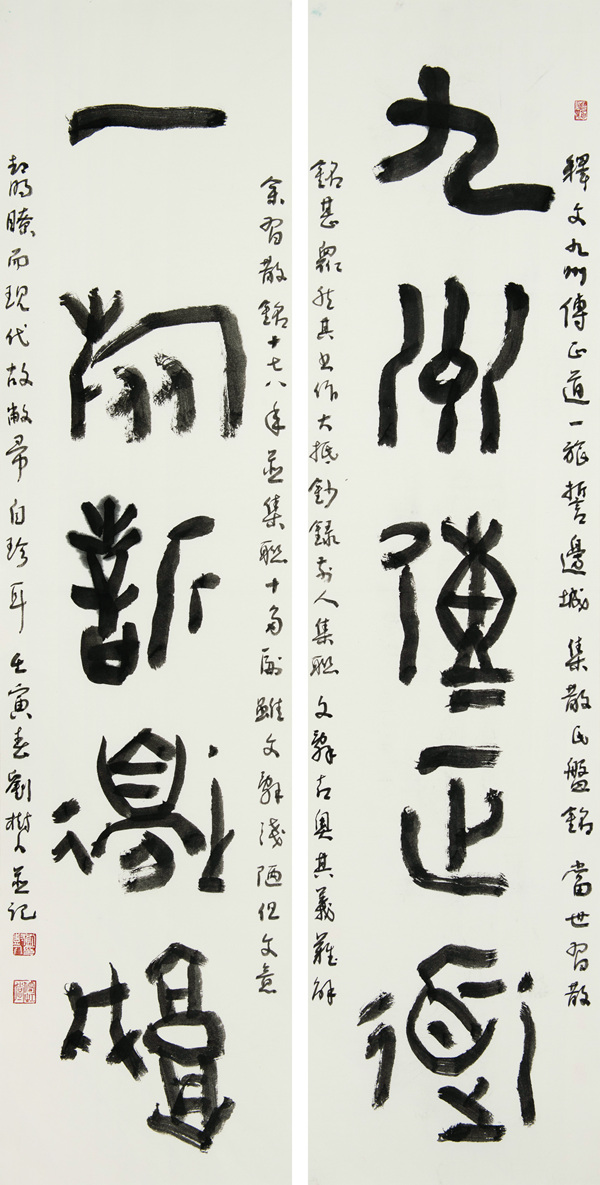 集《散氏盤》聯 九州傳正道 一旅誓邊城 140×34.5×2cm