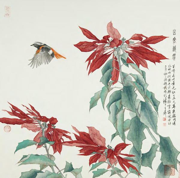 展覽作品充分體現(xiàn)了中青年藝術(shù)家們對(duì)時(shí)代、人文、歷史、改革的思考,無(wú)論花鳥、人物、山水,既有對(duì)傳統(tǒng)水墨的精進(jìn)研究,又有當(dāng)代藝術(shù)思潮影響下的個(gè)人語(yǔ)言的創(chuàng)新,在物象與筆墨的結(jié)合中呈現(xiàn)出創(chuàng)作者沉淀后的自然觀照和文人情懷。含蓄而豐厚的視覺(jué)效果,傳遞著生活在當(dāng)下城市發(fā)展中人與自然與境象的關(guān)系,是情緒的輸出,也是對(duì)生活的洞察。筆墨書寫的過(guò)程是走走停停的尋找,色彩的暈染涂繪是自己與自己的對(duì)話。從一幅幅個(gè)性鮮明的作品中傳遞了上海部分藝術(shù)家的態(tài)度、理念與動(dòng)向……