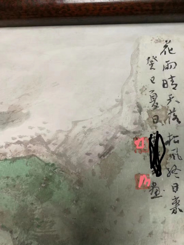 非常感謝您對此事的關注與支持!當時是有一批名家字畫拿到我們畫廊來裝裱的,有陳佩秋、劉小晴、丁申陽、樂震文等老師的作品,且都是大尺寸的,均有不同程度的霉花,其中樂老師的一幅六尺山水霉蝕得最為嚴重。