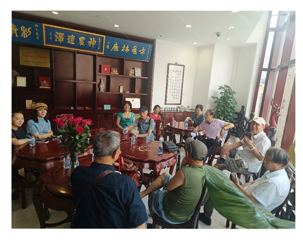 8月10日下午,畫友薈一行十余位畫家冒著酷暑,前往華山路2號雷允上藥城3樓雷允上-棠柏印社文化創作基地畫廊,參觀”史新民寫生作品展”並座談交流。史新民老師數十年來堅持中國畫山水寫生和創作,他作為畫友薈資深畫家,盡管年逾八旬但仍日日筆耕不輟,每天將自已作品發佈在畫友薈群,和大家交流。這次展出的近三十幅作品,從新疆到云南,從太行到桂林…從一幅幅風格各異的寫生作品中,讓我們看到畫家求變的探索軌跡!