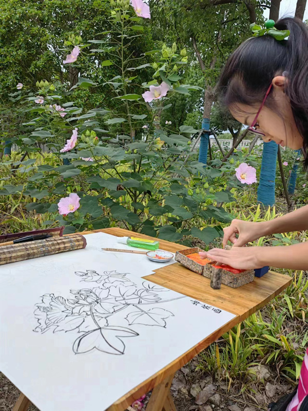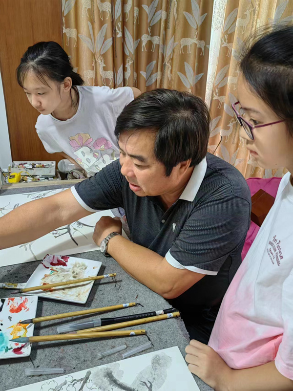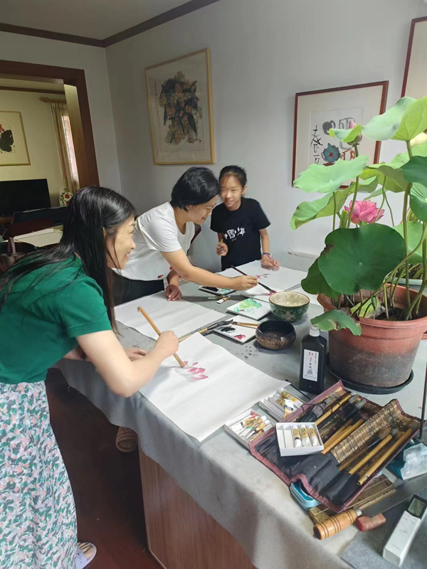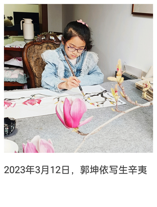 這些學(xué)生,都是在上海疫情爆發(fā)以后,先后到夏建峰老師的工作室學(xué)習(xí)國畫的,大家學(xué)習(xí)非常刻苦,特別是陳毅、陸菲菲和武莎,她們白天上班,晚上回家還有家庭日常事務(wù)的打擾,能夠堅持的現(xiàn)在不容易。兩位小朋友郭坤依和唐熙晨,都進入中學(xué)了,而且都是班級的班干部,對于她們來說,現(xiàn)在的學(xué)習(xí)時間越來越緊張,且每個星期還堅持不懈的來夏老師工作室學(xué)習(xí)國畫。