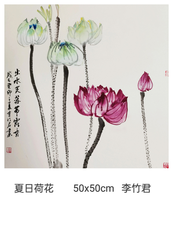 還有一位學(xué)生李竹君,是一位退休教師,她是最早來學(xué)習(xí)書法的,后來看到其他學(xué)生在畫畫,在夏老師的鼓勵下,也開始學(xué)習(xí)國畫了,這次她的作品沒有展出,編輯準備在線上和大家一起展出。