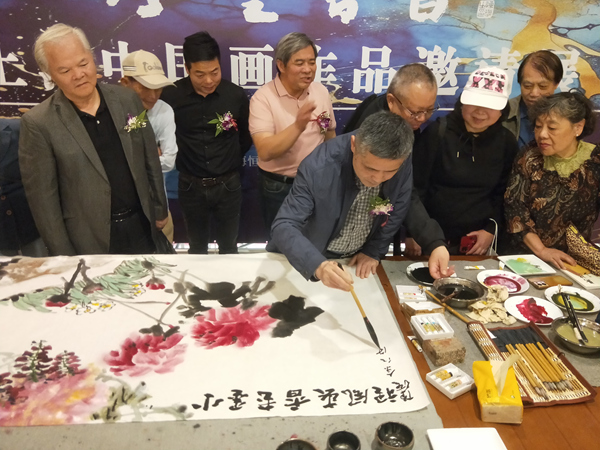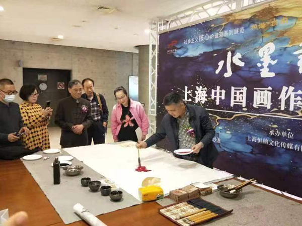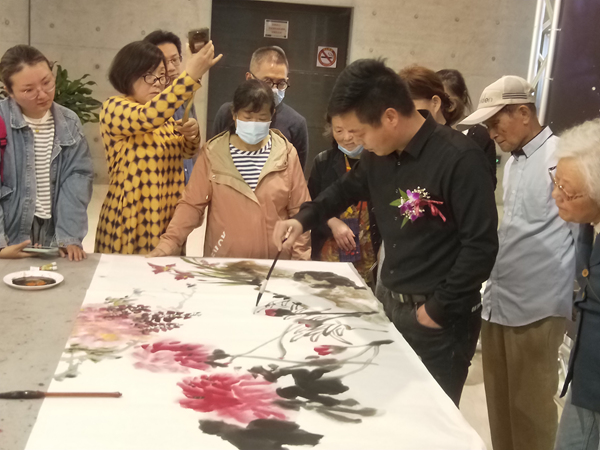 在開幕式前,已經來了許多繪畫愛好者,畫師們現場揮毫潑墨,把活動推向高潮。
