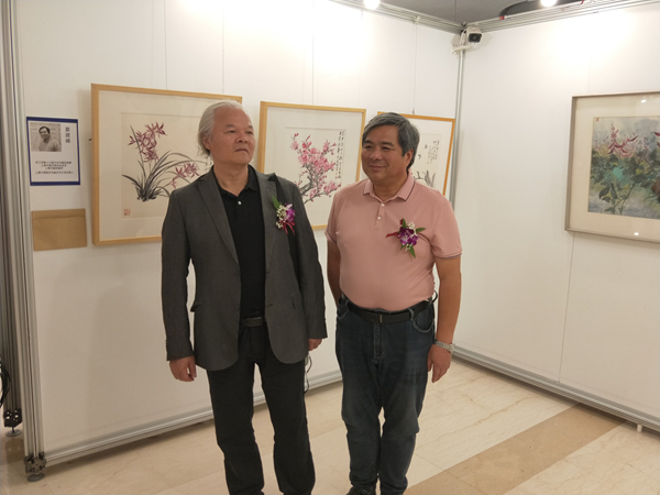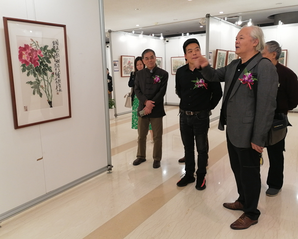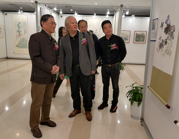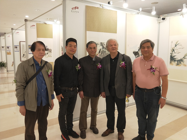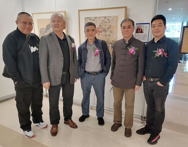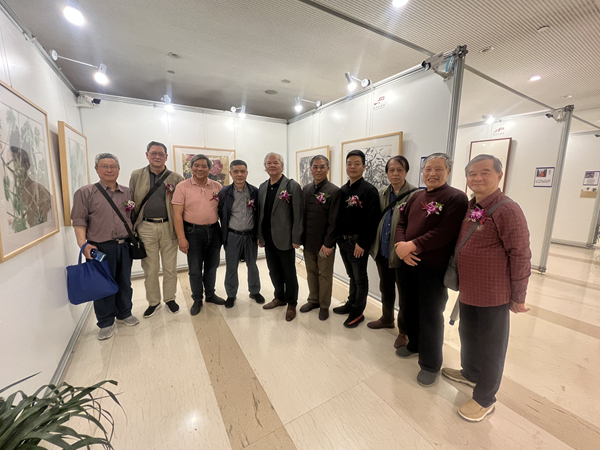 畫師們在展廳交流合影
