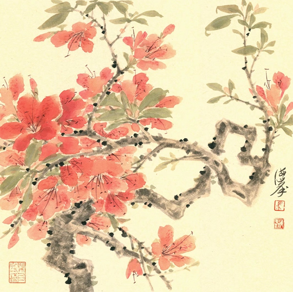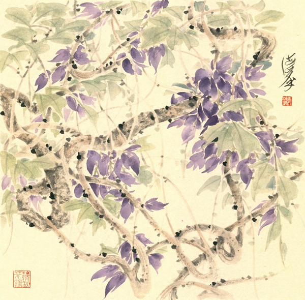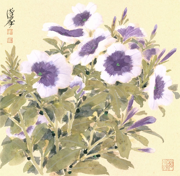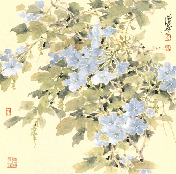 前輩藝術大師陳佩秋先生教導我:判斷藝術作品優劣之標準,一為美,二為難。又說:藝術貴在創新。我以為,馬海峰都做到了。他兼具小寫意和沒骨畫法相結合的筆墨趣味,使畫面色彩繽紛,卻又清新脫俗,奔放而靜謐,精細而率性,嚴守法度又妙趣橫生。他說筆墨當隨時代,技巧需要借鑒傳統,但決不拘泥于一技一法,要契合當代人的審美意識。一花一世界,一花一故事。生活是藝術靈感的源泉,藝術是對生活的精心雕琢,激蕩的是心靈美好。