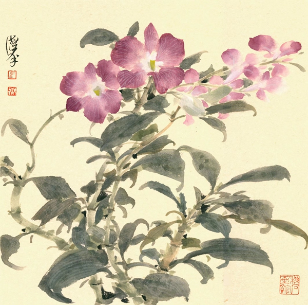 難能可貴的是,他飽覽百花神采,累積不計其數的寫生作品,但這次向黨百年華誕獻禮的作品,全部選自國內的花卉品種。筆者最近先睹了他準備展出的百幅作品,果真花團錦簇,美不勝收。特別是看到他完成第100幅作品“龍船花”時神采飛揚的快樂,真的被感動了!