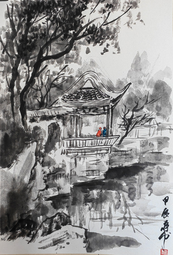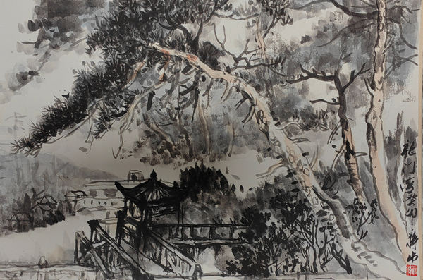 近年來有機會參加了數次旅游采風活動,每每都努力去體驗人和自然,藝術的美感,立求客觀和主觀的再認知,再統一。戶外寫生注重取法自然,細觀每幅作品,層巒疊嶂,造化筆底,大有其:戰立高峰去看風,山水無聲入紙來。以藝術觀念,運用豐富的筆墨,精準的理解,解構映入眼簾的大自然各類存在,欲與大癡同云游,讓人感受草木皆有情,暮秋山舍滿坡暉。詩是藝術靈魂的逐放處,繪畫的淵源,永保山林之中的野趣,悠然之中天趣自生。歷次戶外寫生情況各不相同,因為采用了各種方法以嘗試如:鋼筆速寫,鋼筆淡彩,水彩,水墨。
