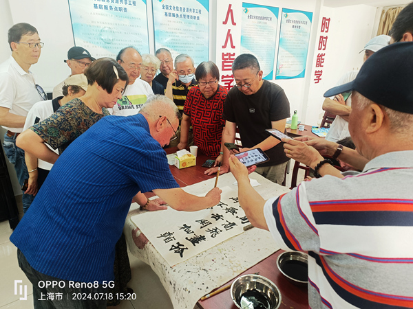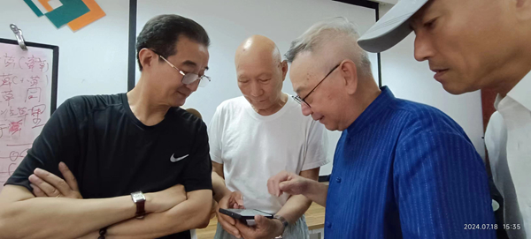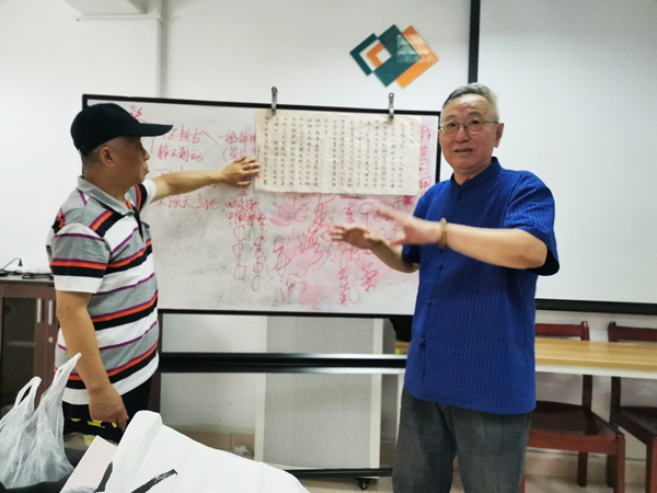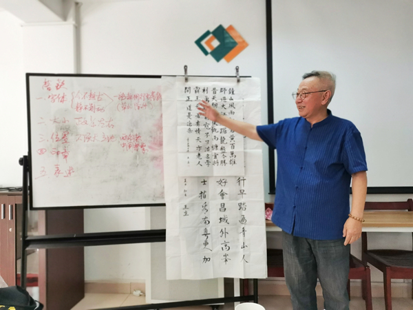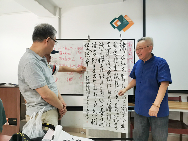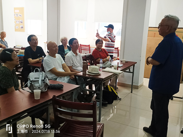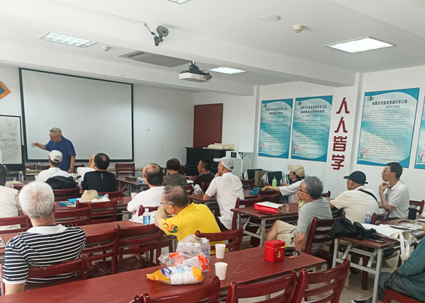 昨天,上海的三伏天,太陽火辣辣的烤著大地,整個城市熱的使人喘不過氣來,盛夏的陽光真像蘸了辣椒水,坦蕩蕩的街上沒有一塊陰涼地,天氣悶熱得要命,一絲風(fēng)也沒有,但是,上海知青書畫聯(lián)誼會的會員們,卻冒著酷暑,滿懷激情的從城市的各個區(qū),來到聯(lián)誼會的活動基地,長寧區(qū)天山社區(qū)文化活動中心教學(xué)樓,因?yàn)榻裉焓侵麜遥?lián)誼會常務(wù)理事王宜明老師來到現(xiàn)場,在教學(xué)樓做現(xiàn)場講座,這次活動吸引了聯(lián)誼會不同畫種的藝術(shù)家和藝術(shù)愛好者,這里有版畫、國畫、水彩畫、油畫和還有書法專業(yè)的,那么多畫種的藝術(shù)家和藝術(shù)愛好者,都是奔著王宜明老師而來,來聽講座,下午一點(diǎn)半的講座還沒有開始,教室里已經(jīng)來了許多人了。