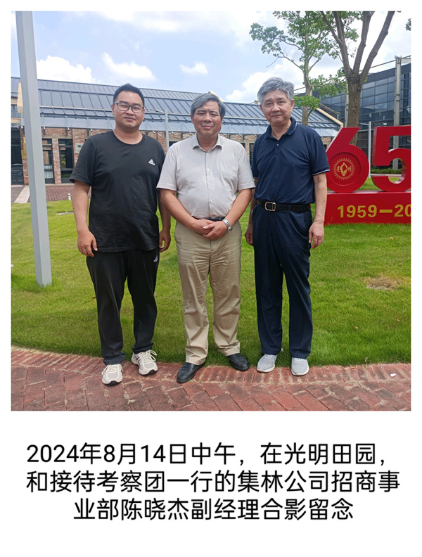 2024年8月14日,在會(huì)長(zhǎng)夏建峰老師的帶來(lái)下,副會(huì)長(zhǎng)兼秘書長(zhǎng)英自海老師和王立老師一行三人一早前往崇明農(nóng)場(chǎng)考察,這次現(xiàn)場(chǎng)考察,是為今年9月24日在新海鎮(zhèn)和光明食品集團(tuán)崇明農(nóng)場(chǎng)有限公司舉辦“慶祝新中國(guó)成立75周年,上海市屬農(nóng)場(chǎng)知青書畫聯(lián)誼會(huì)美術(shù)作品展”的畫展做前期準(zhǔn)備、打前站。考察團(tuán)首先來(lái)到位于前進(jìn)農(nóng)場(chǎng)的上海光明集團(tuán)崇明農(nóng)場(chǎng)有限公司,黨群辦茍妙主任熱情的接待了大家,并且介紹和推薦了幾個(gè)可以展覽的地方供參考,作為展覽場(chǎng)地的參考,首先茍妙主任帶大家參觀了總部會(huì)場(chǎng),然后介紹大家到位于長(zhǎng)征農(nóng)場(chǎng)的光明田園,集林公司招商事業(yè)部陳曉杰副經(jīng)理接待了考察團(tuán)一行,并且介紹了光明田園的展廳和休閑區(qū),還開(kāi)著電瓶車帶大家參觀了景區(qū),景區(qū)很大,非常壯觀。