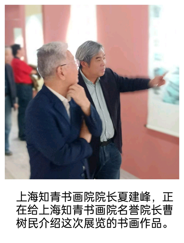 出席開幕儀式的有上海光明集團原總裁、上海知青書畫院名譽院長曹樹民,上海市志愿者協會副主席、原上海市文聯住會副主席、一級巡視員沈文忠,上海市屬農場知青聯誼總會會長李鳳吾,上海綠地集團原副總裁、上海知青書畫院顧問黃駿,上海市屬農場知青聯誼總會秘書長王淞滬,上海知青書畫院院長夏建峰,上海知青書畫院畫師、中國書法家協會會員王逸中,上海知青書畫院畫師、蘇州李可覽藝術館副館長朱順林、上海知青書畫院辦公室崔小鳳。