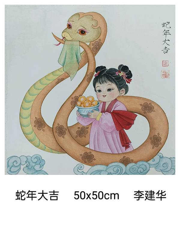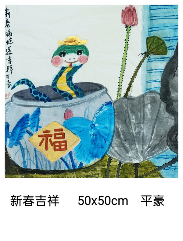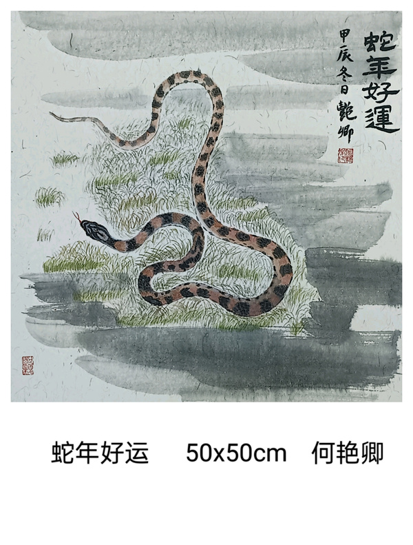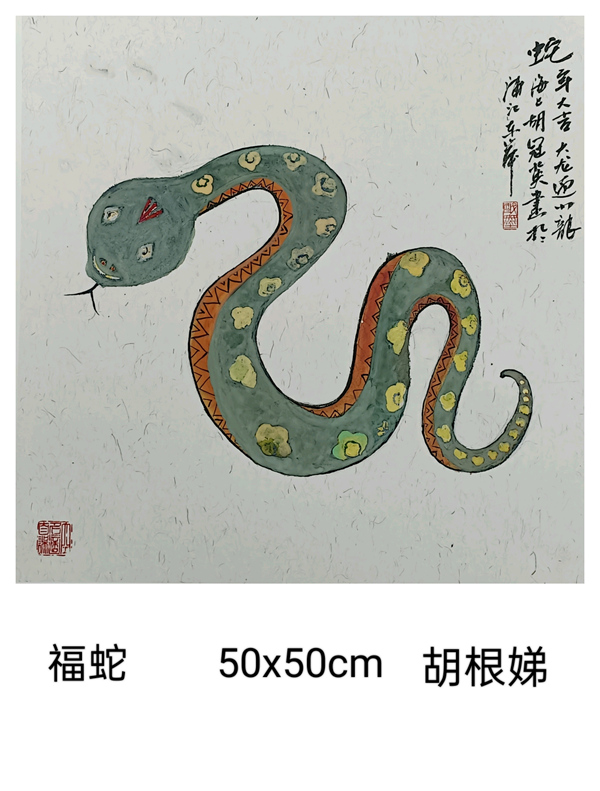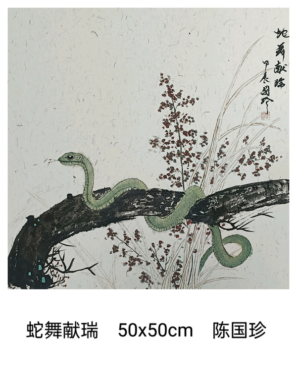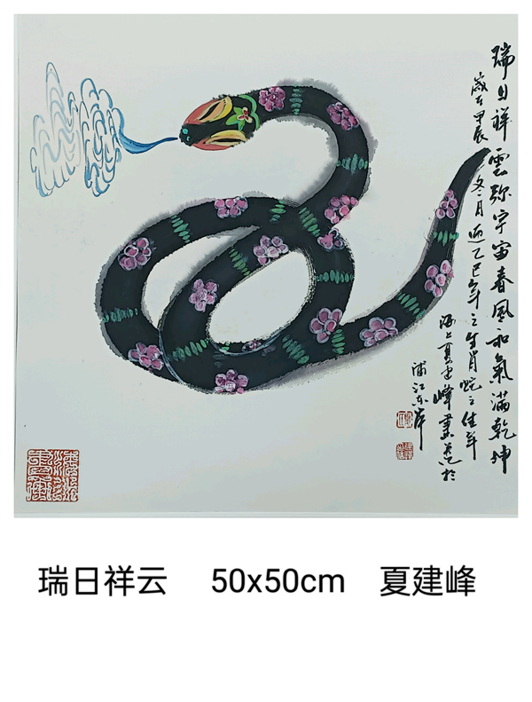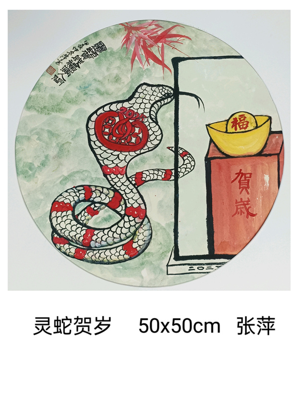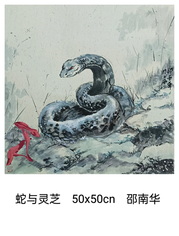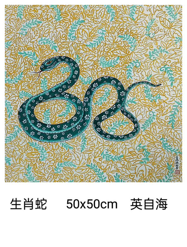 我們上海這片文化厚土,有著濃郁的藝術氣息。我們書畫聯誼會的藝術家秉持著對藝術的赤誠初心,展覽了一批以生肖蛇為題材的書畫小品,盡管尺幅有限,卻容納著書畫家們對藝術的想象與洞察。這些作品題材豐富多樣,圍繞生肖蛇題材,結合山水、花鳥、人物已經裝飾畫,這些作品則表現了自然靈動與神韻。書畫家們以精妙的筆墨、和諧的色彩,勾勒出內心深處的美好和對藝術的不懈探索。