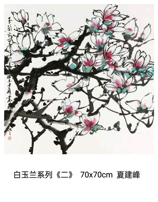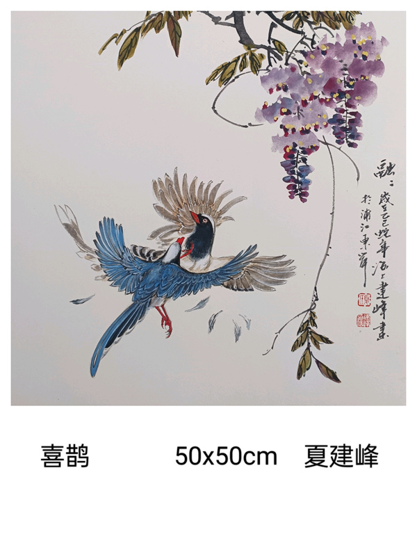 作為一位跨界藝術家與文化策劃人,夏建峰先生的藝術生涯始終與家國情懷、社會責任緊密相連。他不僅是上海市美術家協會會員、上海花鳥畫藝術沙龍秘書長,更以農工黨中央書畫院理事、上海知青書畫院院長等身份,推動書畫藝術的公共化與普惠性。其作品曾入選上海美術大展、全國中國畫大展,并在朵云軒、朱屺瞻藝術館等殿堂級場館舉辦個展,足跡遍及全國十余省市。尤為可貴的是,他多次將作品捐贈公益,資助貧困學子與災區重建,踐行“藝術為民”的初心。