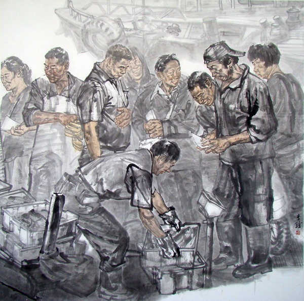 自徐悲鴻、蔣兆和二人始,中國水墨人物畫加速了探索的步伐。以中國美術學院為濫觴中心的浙派人物畫,賡續至今出現了李震堅、周昌谷、方增先、吳山明、劉國輝等等一批又一批優秀的藝術家。這些畫家與當時的北方畫家相比,在用墨用色上透明多變,在用筆上飄逸清秀,并更加注重書法韻味。他們在刻畫當代人物的形象方面做出了許多有益的探索,較好地緩解了同時追求寫實造型與筆墨時產生的生硬感。實踐說明將光影寫實語言與傳統寫意人物畫的勾勒相結合,是能夠表現新時代、新都市、新人物的。