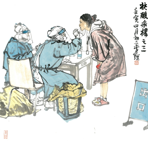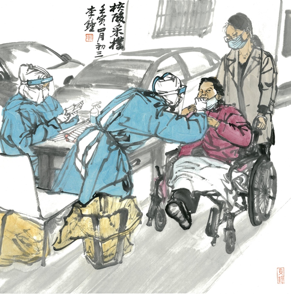 李鐘 《核酸采樣之二》 中國畫 69×69cm 2022