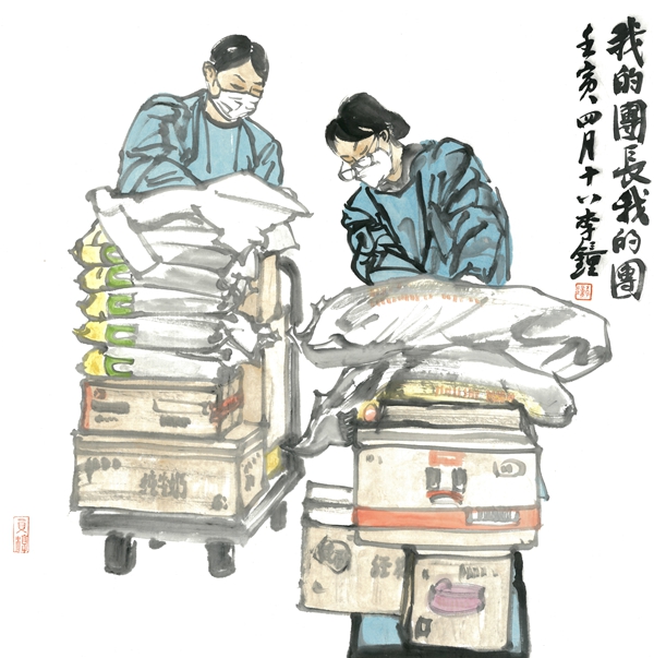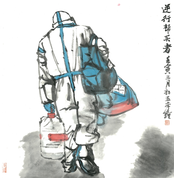 李鐘 《逆行幫買者》 中國畫 69×69cm 2022