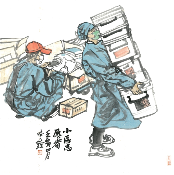 《小區志愿者之一》69×69cm 中國畫 李鐘 2022