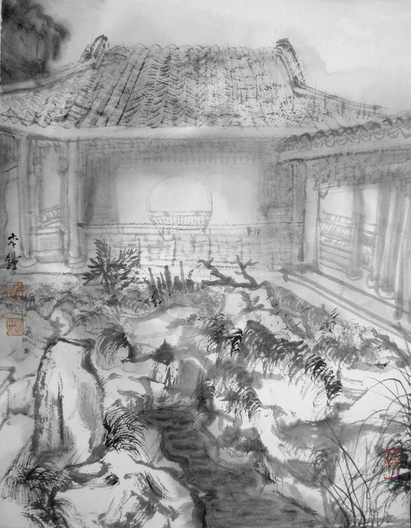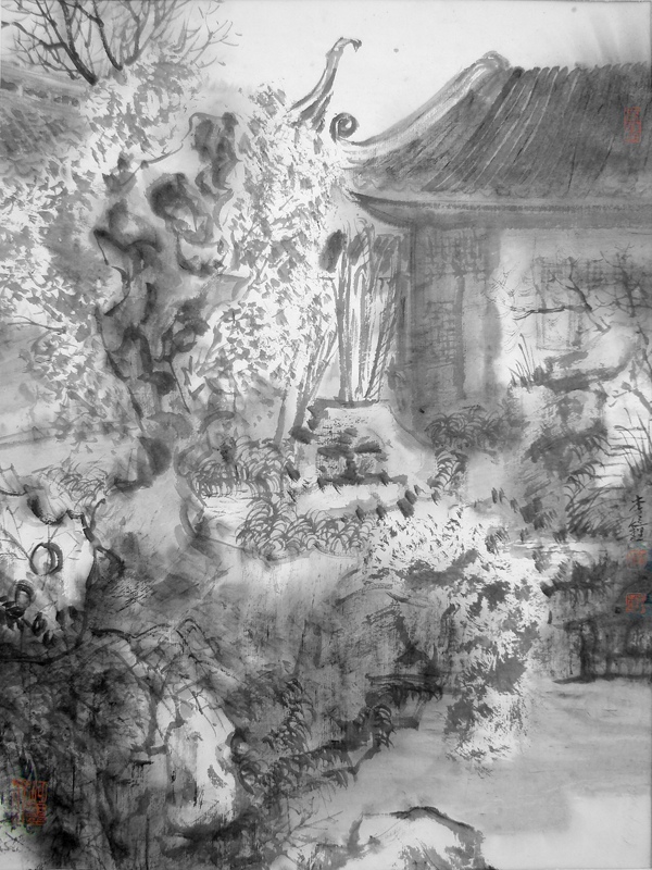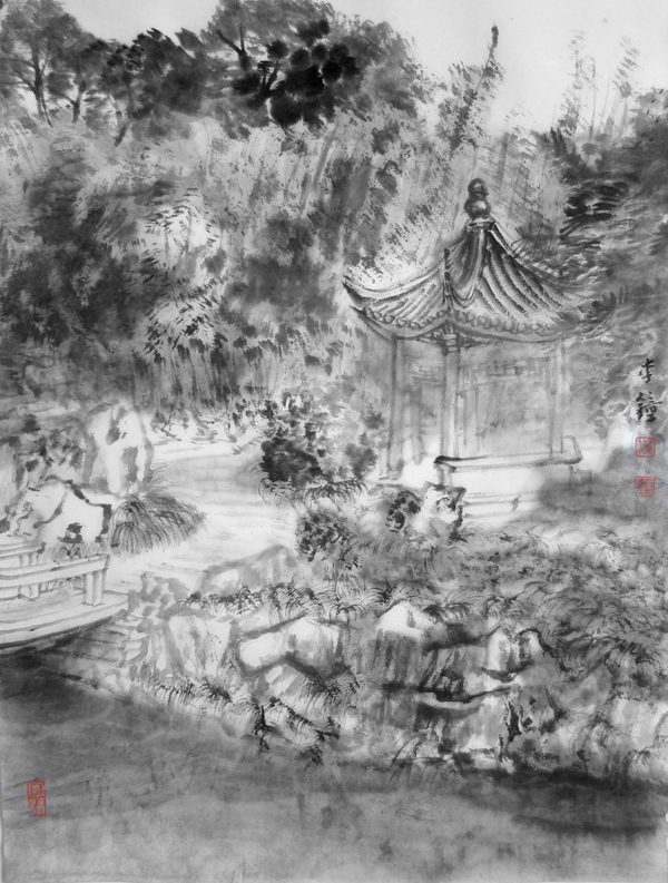 興園度鶴亭 46×34cm 水墨寫生 2011 李鐘
