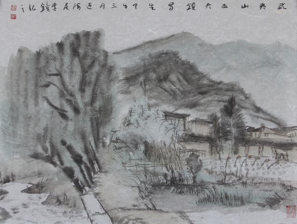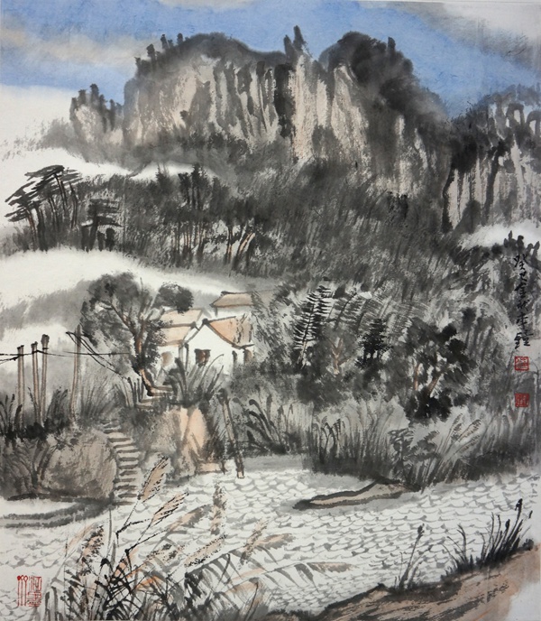 嶺上人家 52×46cm 水墨寫生 2013 李鐘