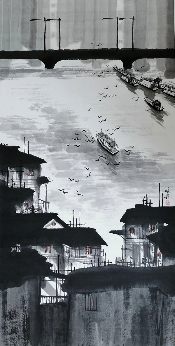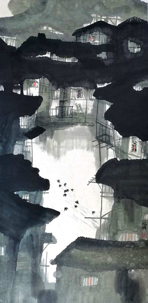 徐鴻興的版畫優雅獨特,引人入勝,同時他又把版畫元素融入國畫創作之中,令其國畫作品形式新穎,氣勢奪人,水墨淋漓,風格獨特。