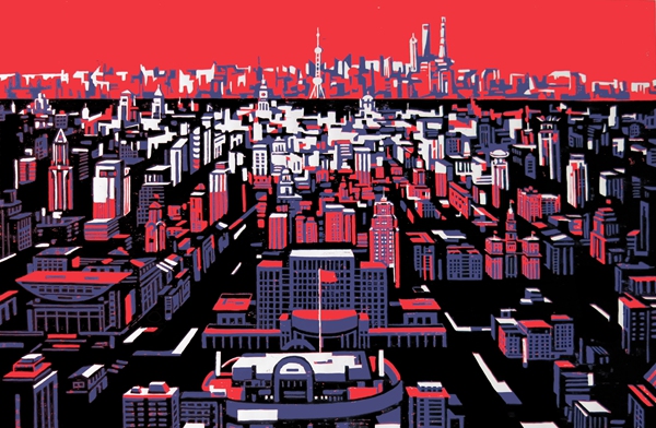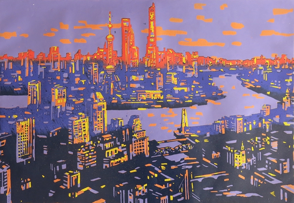 浦江二岸  54×78cm  絕版套色木刻
