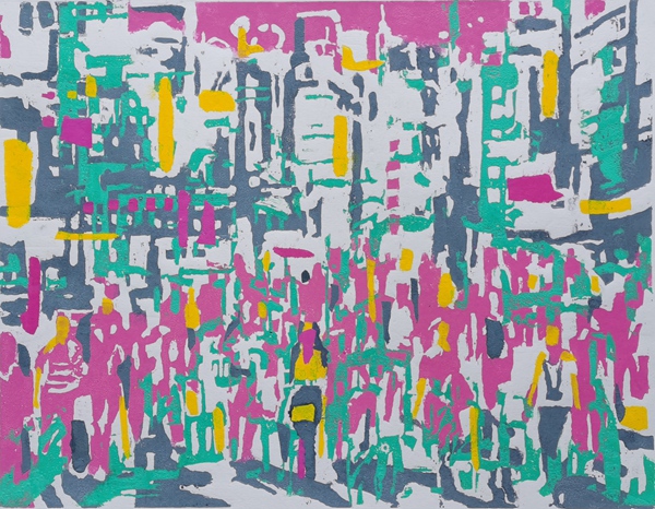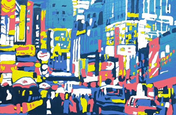 鬧市  53×60cm  木刻、紙版套色