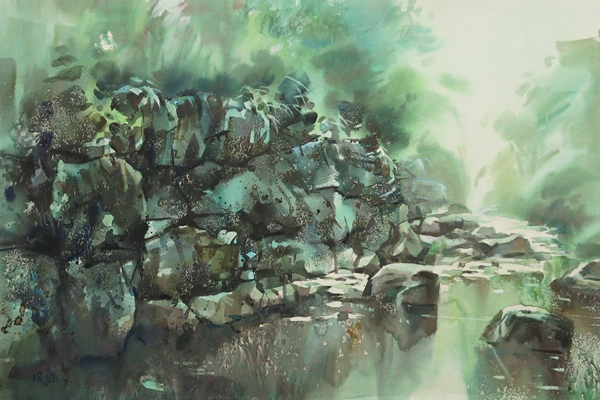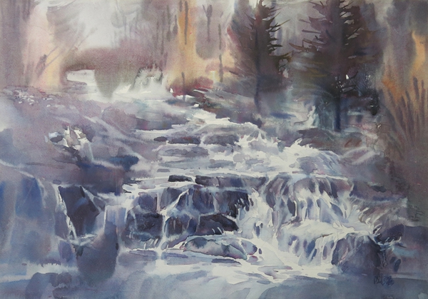 溪流  50×70cm  水彩