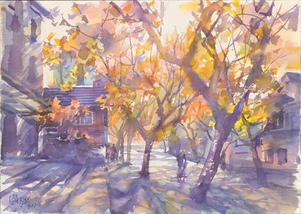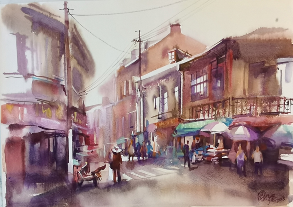 黃金城道  54×77cm  水彩