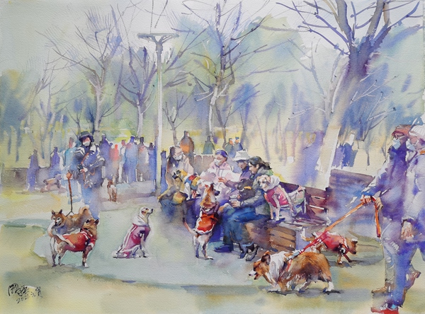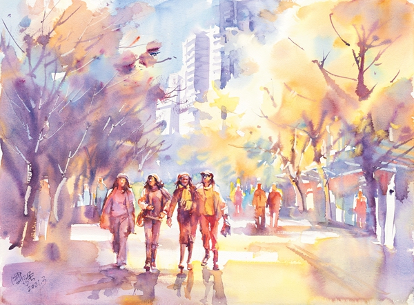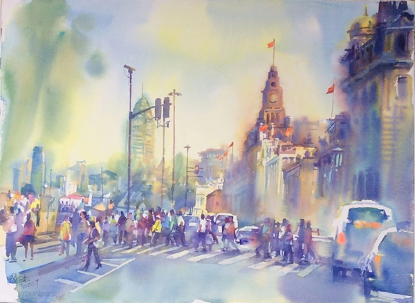 多年來城市景觀、城市生活都是我重點關注的題材。無論國內或國外的歷史建筑或現代景觀,不僅留下了以往的記憶,也記錄了這座城市的變化,激起我寫生及創作的欲望,我的目光始終關注城市中每個角落各式人物的活動狀態,我試圖用自已的圖式去記錄一個個平民百姓故往今來在城市日常生活的瞬間故事,反觀近年來我這些作品,只是探索路上一小步,還有很長的一段路…