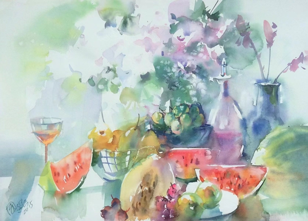 水彩畫創作過程的不可預知及不可復制性,為畫家帶來各種機遇和挑戰,隨時面臨各種不同技巧的考驗,瞬間須掌握物體的形象及因水色的流動、滲化、停滯所產生的偶然魅力,透徹的了解水,巧妙地運用水就一定能在水、色的世界里游刃有余。