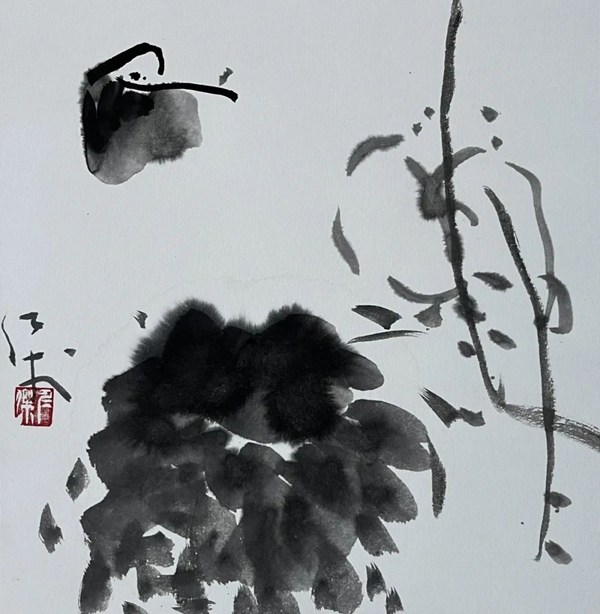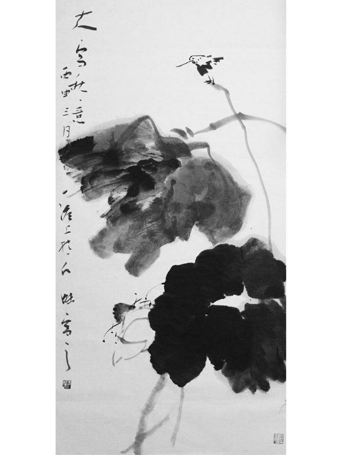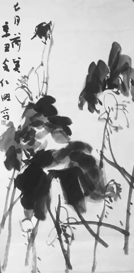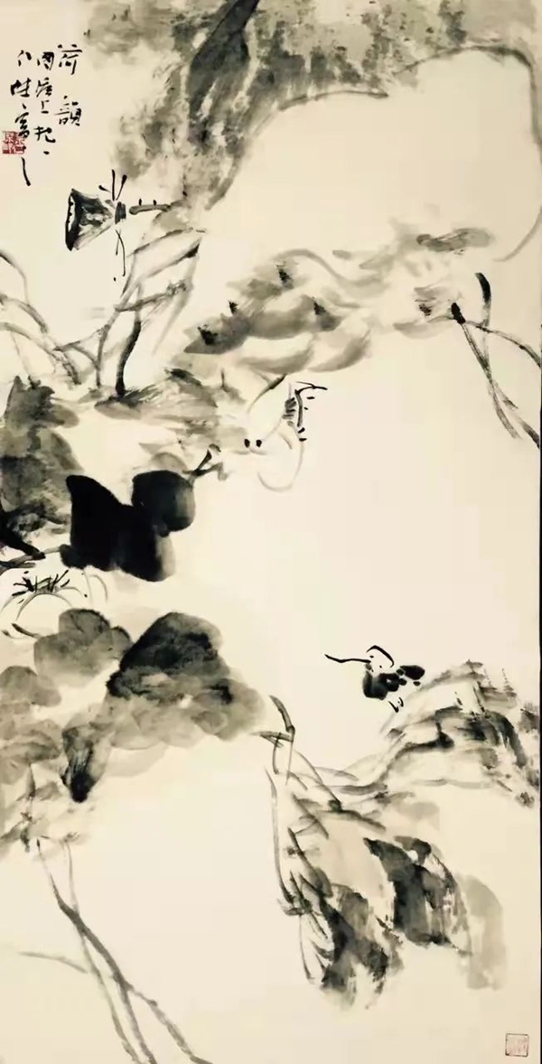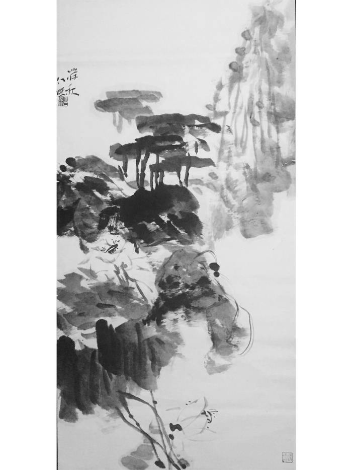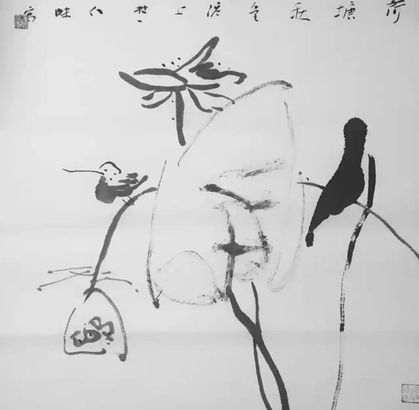 于是,在畫(huà)壇便有了徐渭、朱耷這樣的奇才怪杰。徐渭畫(huà)荷豪放潑辣,水墨淋漓,神完氣足;朱耷畫(huà)荷則純以筆墨取勝,形式簡(jiǎn)練,絕俗剔透;但觀余仁杰筆下的荷,繁與簡(jiǎn)、枯與濕、重與輕、熱烈與冷逸竟然兼而有之,倘若沒(méi)有一定的功力、足夠的才情、天賦的靈性,怕是很難合二為一的。