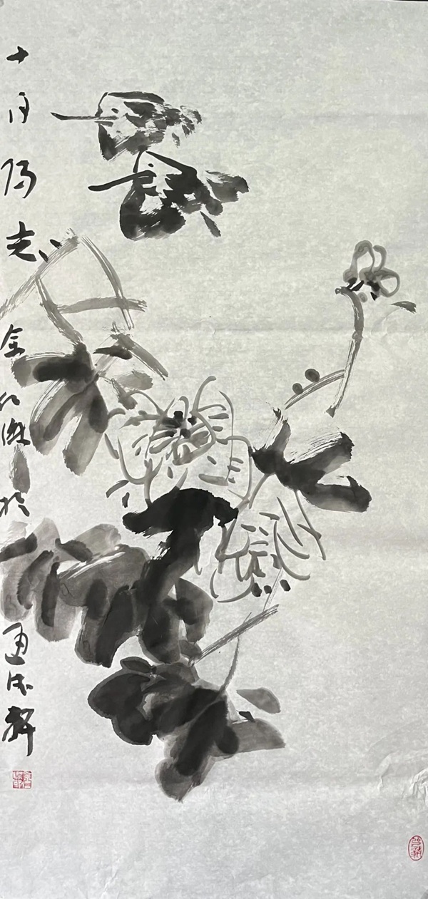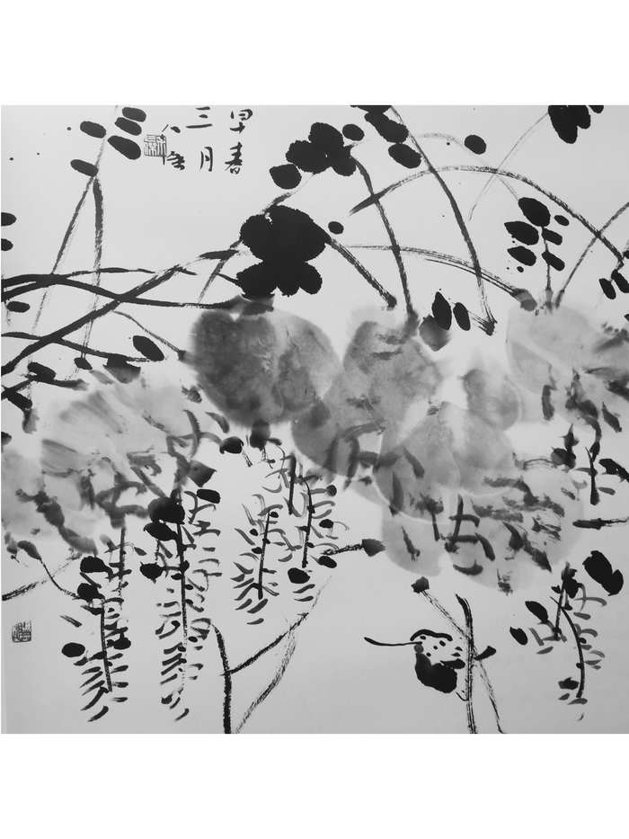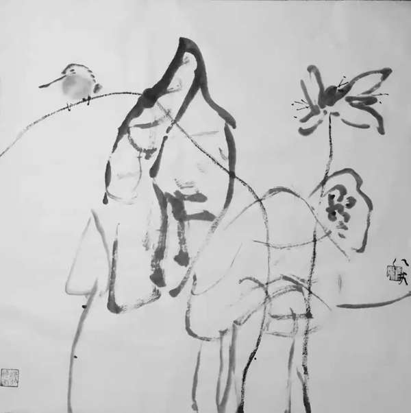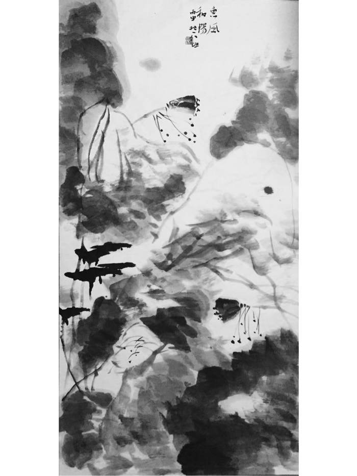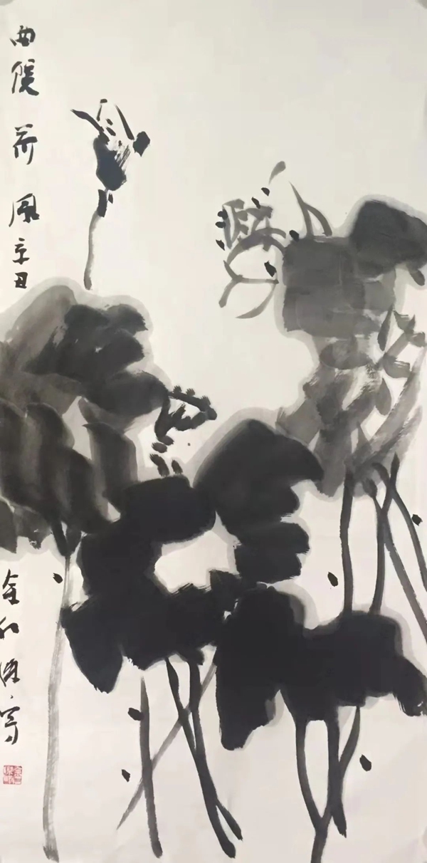 于是,在畫(huà)壇便有了徐渭、朱耷這樣的奇才怪杰。徐渭畫(huà)荷豪放潑辣,水墨淋漓,神完氣足;朱耷畫(huà)荷則純以筆墨取勝,形式簡(jiǎn)練,絕俗剔透;但觀余仁杰筆下的荷,繁與簡(jiǎn)、枯與濕、重與輕、熱烈與冷逸竟然兼而有之,倘若沒(méi)有一定的功力、足夠的才情、天賦的靈性,怕是很難合二為一的。