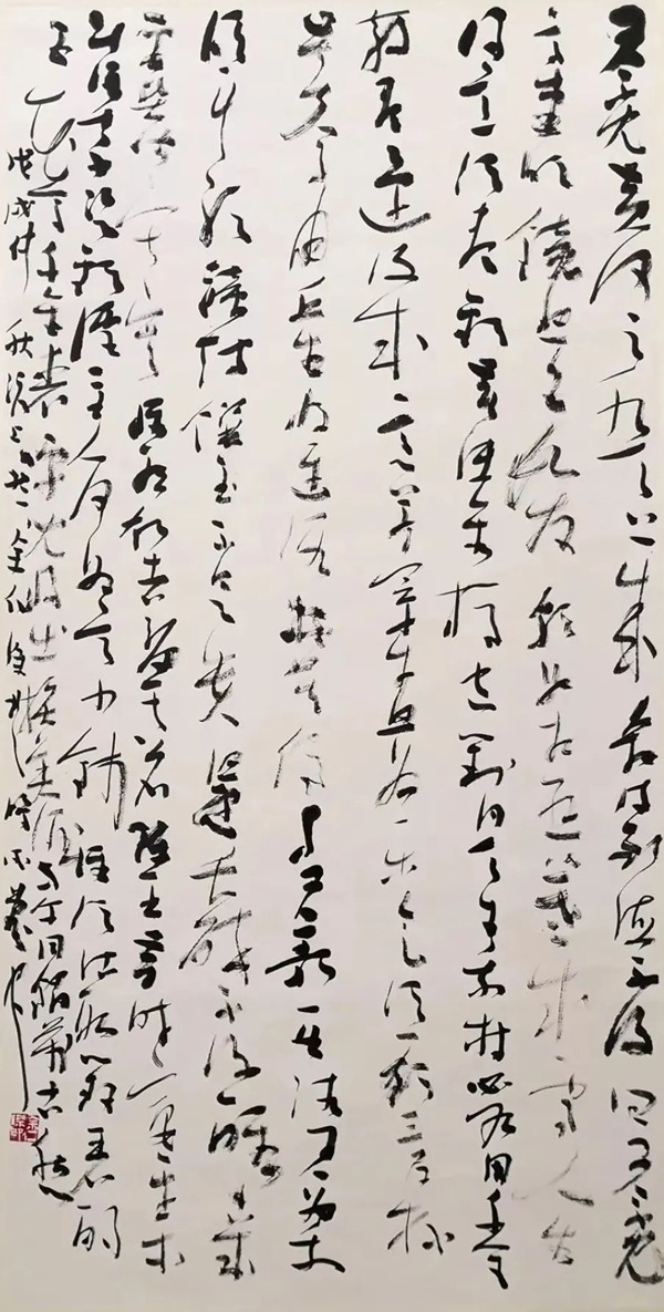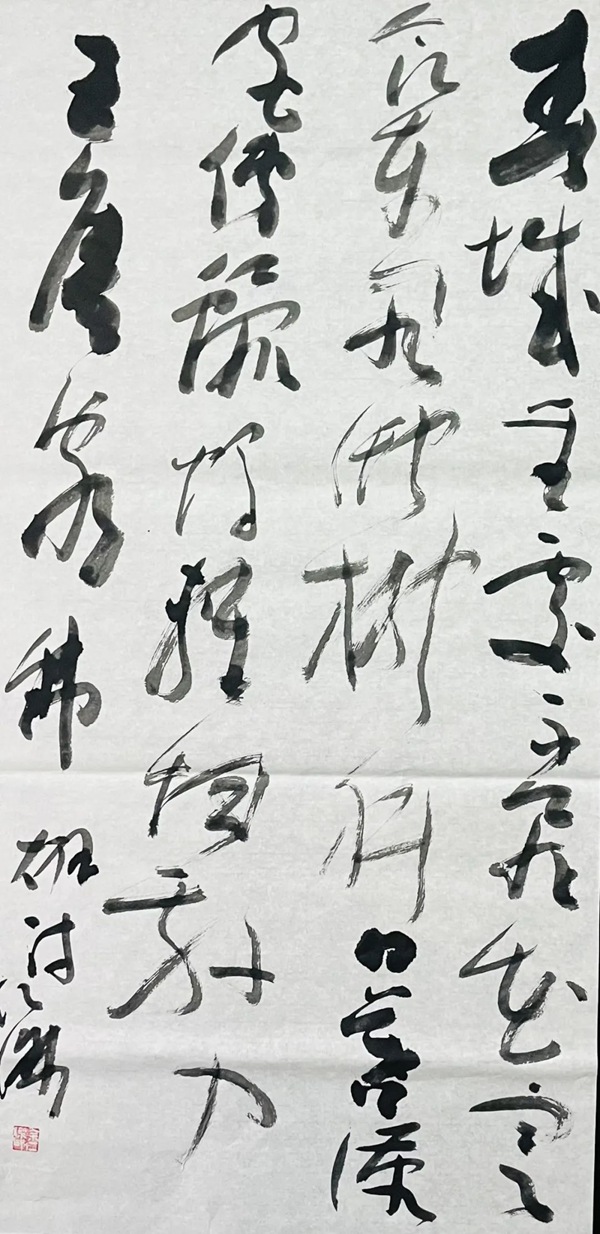 余仁杰的行草書(shū)筆致空靈,墨趣凝簡(jiǎn),滿(mǎn)紙都是古厚正大的氣息,這點(diǎn)很是難得。應(yīng)當(dāng)說(shuō),他很好地掌握了書(shū)法的本體語(yǔ)言,對(duì)傳統(tǒng)做了用心的取舍和注解,對(duì)創(chuàng)新做了恰如其分的開(kāi)拓。